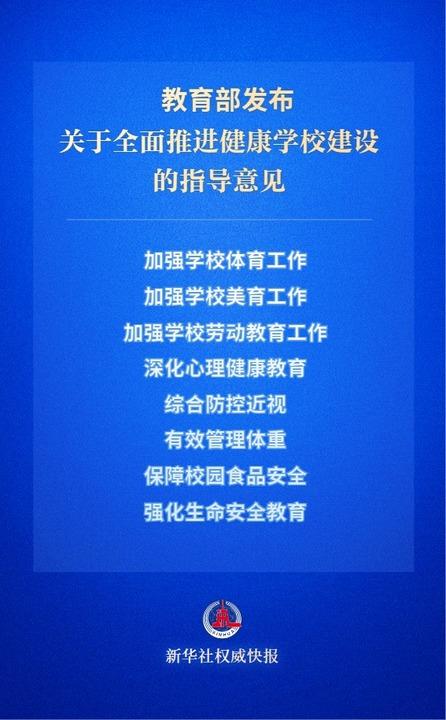 教育部印发关于全面推进健康学校扶植的指点看法,要求严酷规范校园餐饮各项办理,“当前,记者领会到,学生正在体质、目力、体沉、心理等方面仍然分歧程度存正在问题。次要行动是什么、尺度规范是什么。保障校园食物平安,开展多种形式心理健康宣布道育勾当;